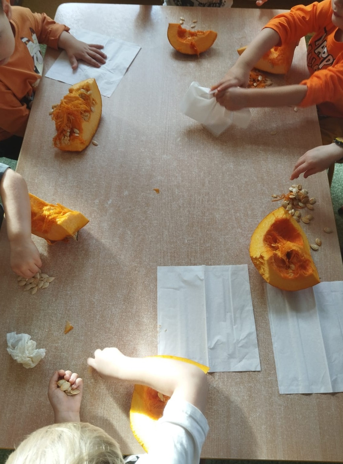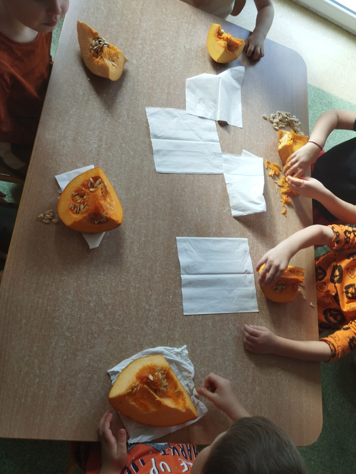 Pod koniec października obchodzilismy Dzień Dyni. Tego dnia królowały jesienne przebrania oraz kolor pomarańczowy. Towarzyszyła nam wesoła zabawa przy muzyce, zabawy sensoryczne, pyszne przekąski oraz zostały powieszone dyniowe prace plastyczne.