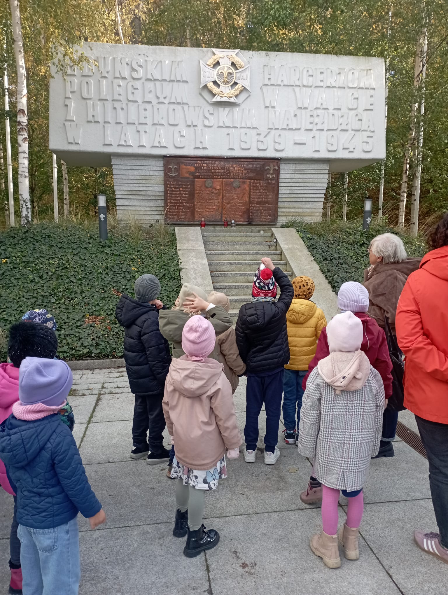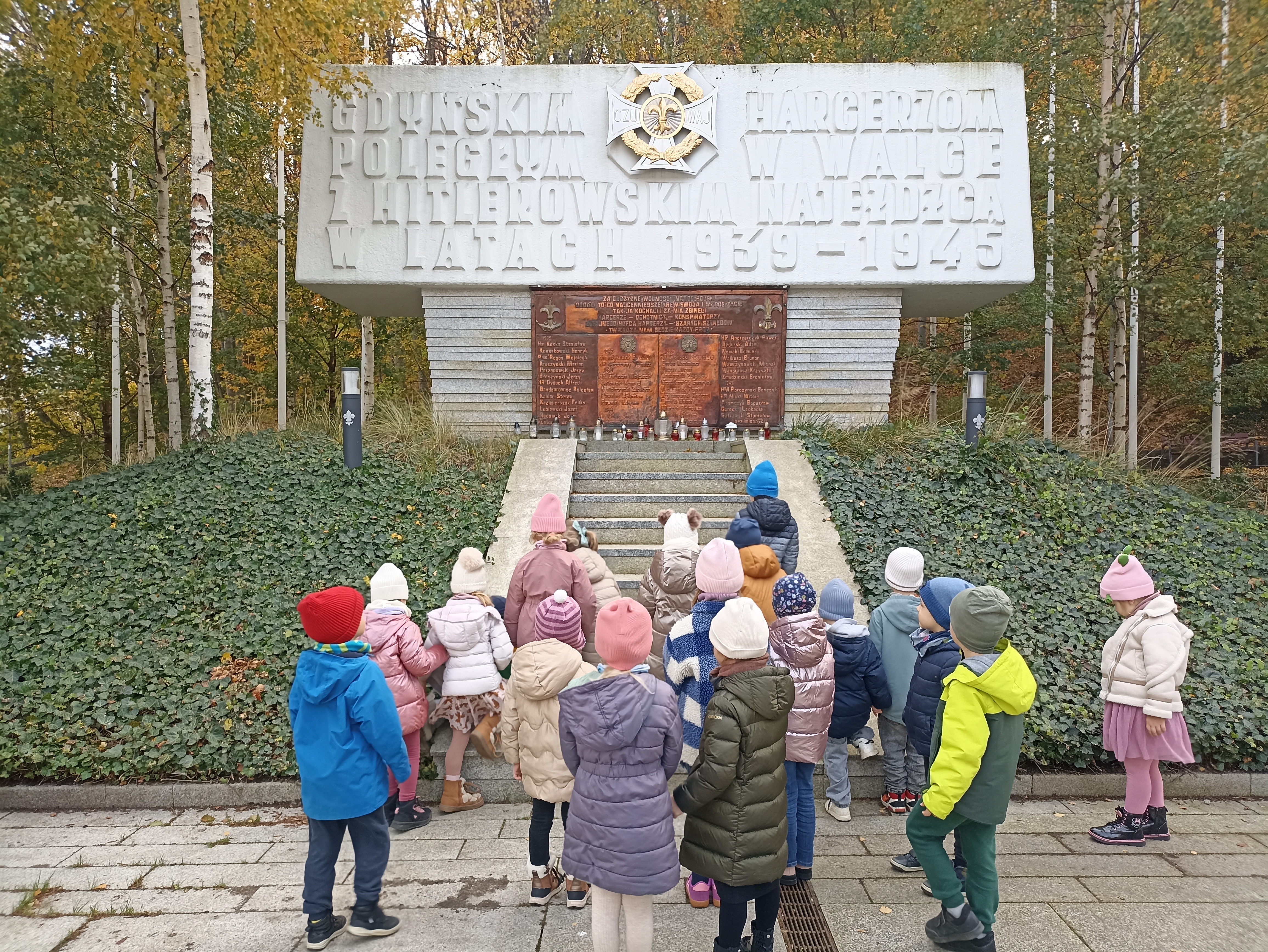 Nasze przedszkolaki także pamiętały o zmarłych, wraz z Paniami zapaliły znicze przy grobie harcerzy.